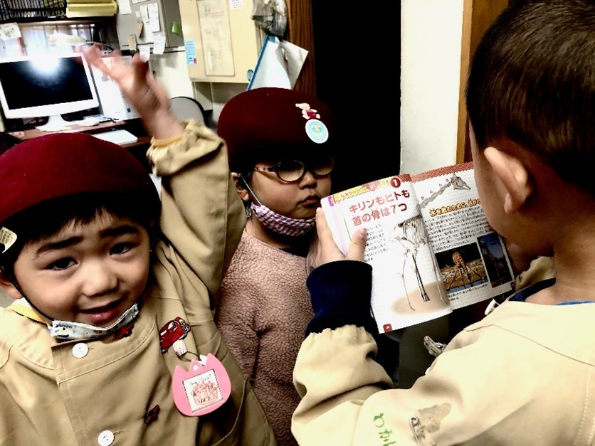 先日は、ちゅうりっぷ組(満三歳児クラス)、年少さん、年中さんの三人でクイズを出し合っていました。