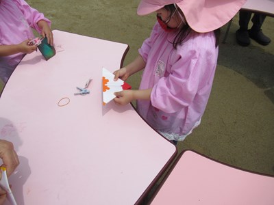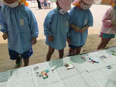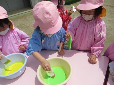 この爽やかな時期にぴったりの、色水の不思議をたのしく体験できた子ども達。そして、「子ども達にもっと面白い魔法を見せてあげたい!」と、年少組の先生達がまた何やら計画している様子。