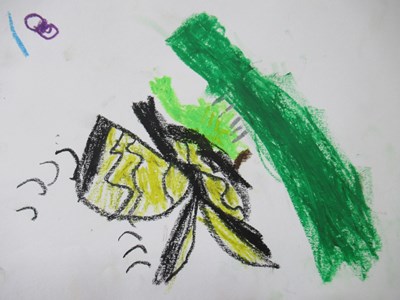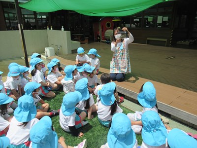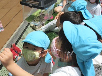 「最初はしっかり葉につかまっていたけど、しばらく経つと羽をパタパタ動かして、大空へ飛び立つ準備をしていたよ!」とちあみ先生が話すと、子ども達はじーっと、その大きな羽を見つめていましたよ。