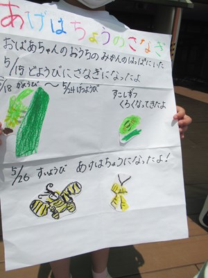 アゲハチョウだから『アゲちゃん』に決まり、みんなは色々な表情でじっと見守ります。