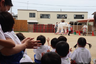 みんなは、ビックリするやら嬉しいやら。「ぞうさ~ん!」と大歓声を上げる子もいれば、目をまん丸にして見つめている子もいましたよ。