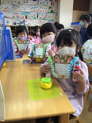 「かわいく出来たよ!」「完成した!!」早く見せてあげたいなあとウキウキしながら心を込めて作った作品を持ち帰った子ども達でした。