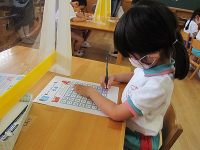 少し難しい部分もあったけれど、先生や友達と1つずつ確認しながら、じっくり考えて真剣に取り組めていたね。さすが、年長組さんの姿でした。