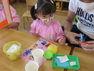 最初は戸惑っていた子も 何度かやってみるうちにひらがなスタンプに少しずつ慣れてきました。