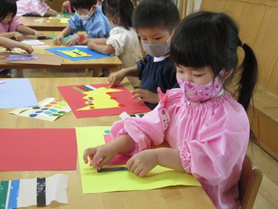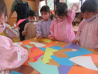 「この形にしよう!」「これが格好いいから、これ!!」と思い思いに画用紙を選んだ子ども達。