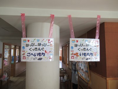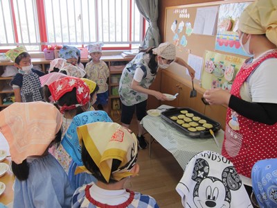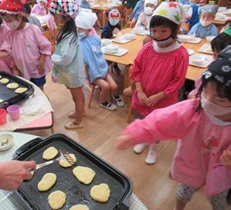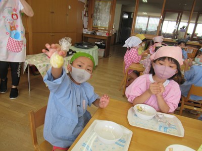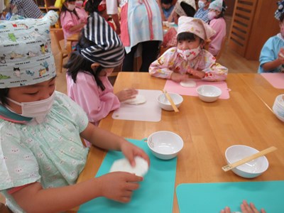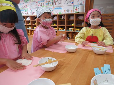 芋餅作りも、一生懸命もみもみ♪ 上手に成形して、まあるく出来ていましたよ!
