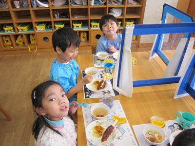おなかいっぱいになったみんなは、もりもりパワー充電完了!!これから各コーナーを作り上げていきますよ!また後程アップしますね♪