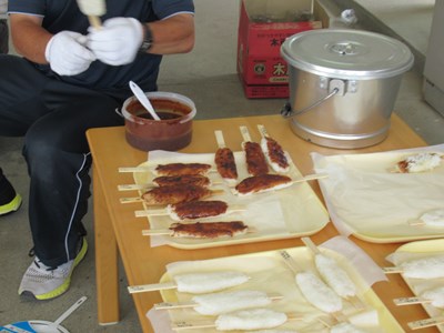 五平餅は炭火焼きです!美味しくなあれの魔法をかけながら、先生たちも運転手さんも頑張っています!!