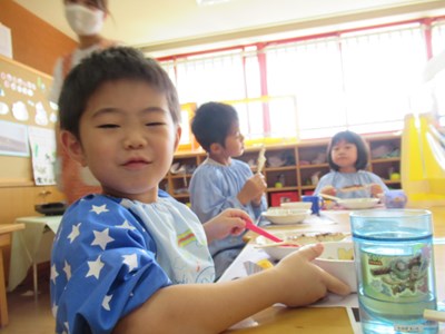 「苦手なお野菜もあるけど、今日のスープは特別!頑張って食べるよ!」