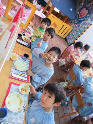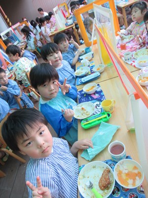 「おなかすいた~!」とお待ちかねのみんな。