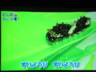 とってもかわいい歌に合わせて、卵から幼虫、そしてチョウチョに変身していくアゲハチョウのお話に、身近に感じた子ども達は大よろこび!!