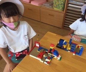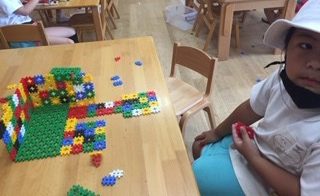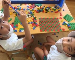 レゴブロック、カプラなどなど、子ども達の想像力を引き出してくれる年長組のおもちゃ達。