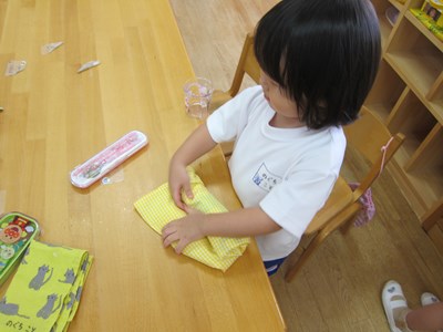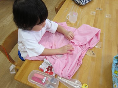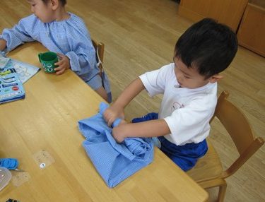 教えてもらった片付け方が身について、エプロンスモックが上手にたためるようになりました。