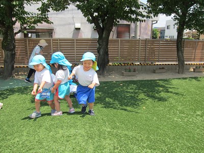 お外遊びが大好きなみんな。晴れた日は出来るだけ、外でワイワイ遊んでいますよ。