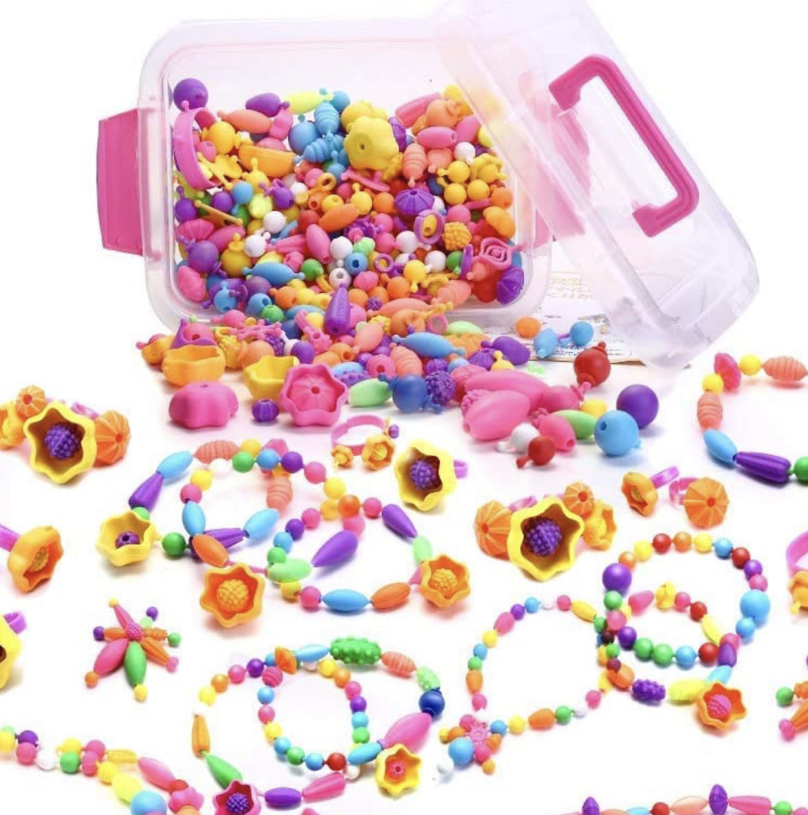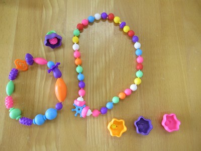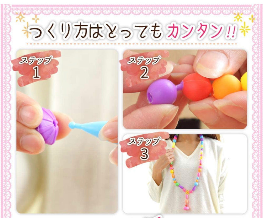 色がカラフル&形の種類が豊富な このアクセサリーキットを早速準備し、年長組さんにお試ししてもらいました😊(画像:アマゾンから引用)