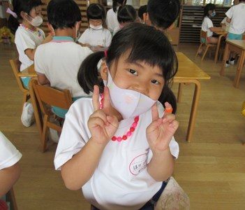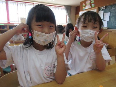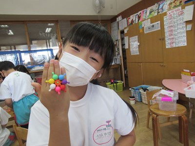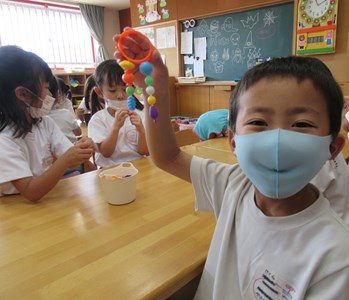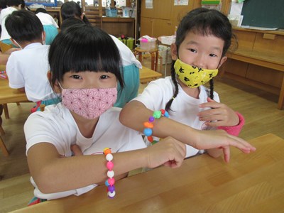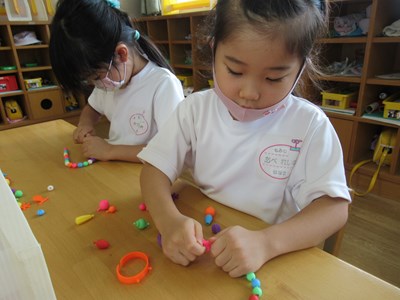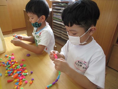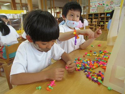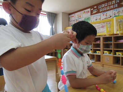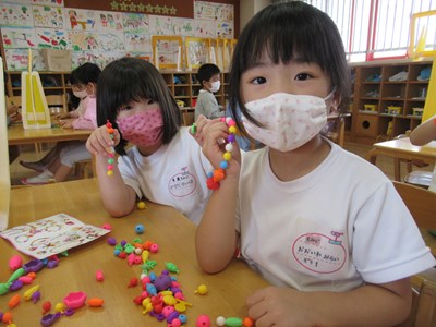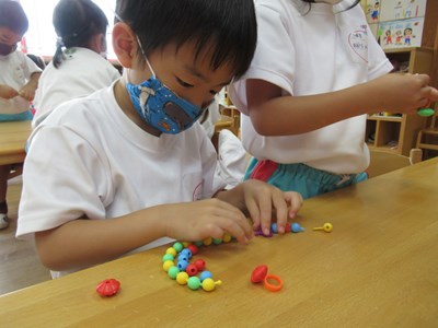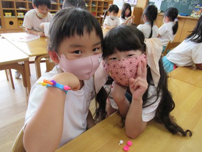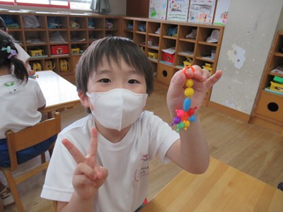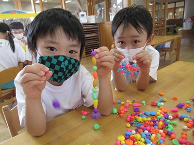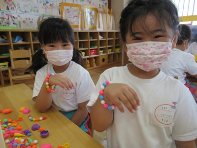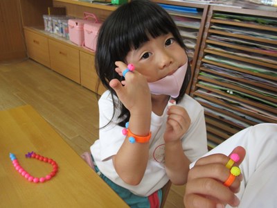 カラフルなアクセサリーが完成(年長組)
