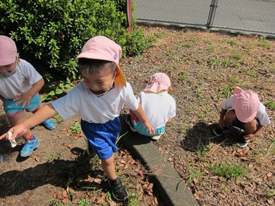 「何の虫がいるだろうね?」と、公園での虫さがしを楽しみにしていた子ども達。