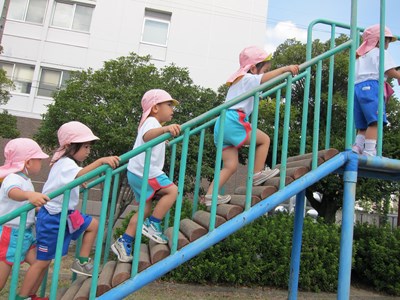 雲梯やのぼり棒など、園庭にはない遊具が幼稚園のすぐ目の前にあるので、定期的に通って、もりもり体力増進していきたいなと思います。みんな、また行こうね!
