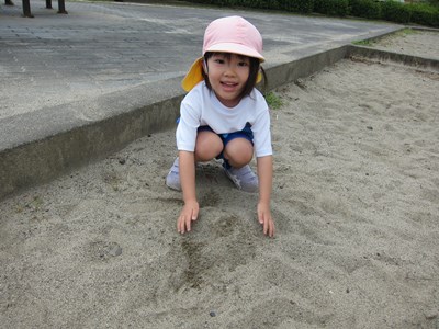 さらさらの砂場で、ゆったりと遊ぶ姿も、年少組さんでは多く見かけました。