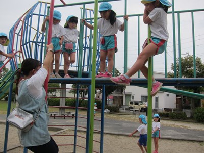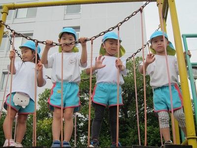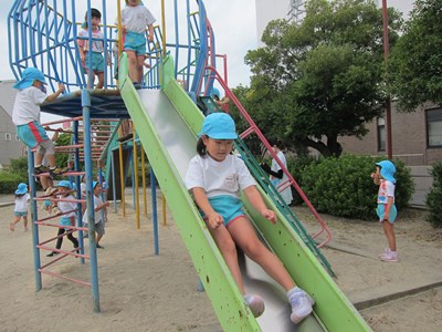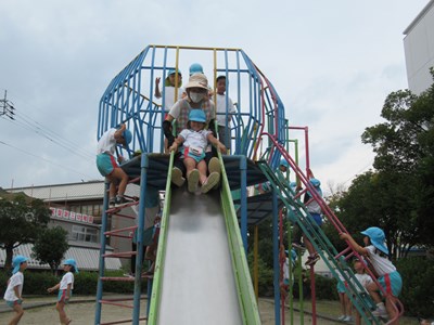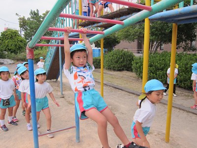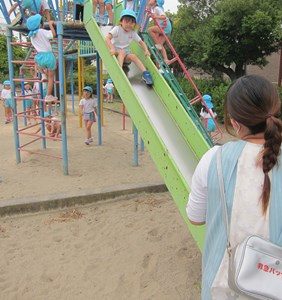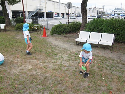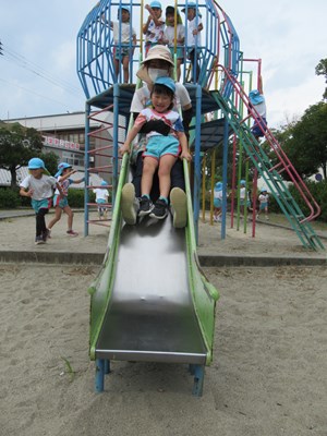 先日の年中組に続き、9月1日(水)には年長組の子ども達が『宇佐中公園』で身体をいっぱい動かして遊んできました。