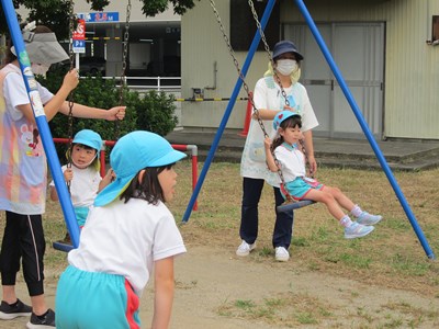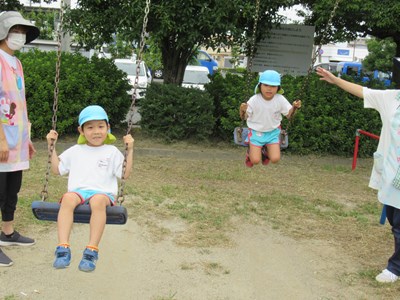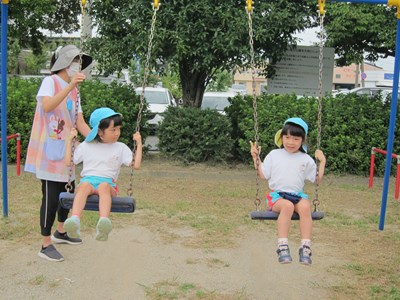 ブランコを自分で漕ぎながら、お友達とお話ししたり。ゆったりとしたひとときを楽しんでいた様子でした。