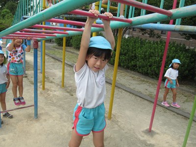 やっぱり雲梯が大人気。身体を上手によじりながら、バランスを保って進み、あっという間ゴールまでいっちゃう子ども達。パワー全開です!