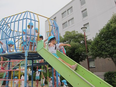 大好きな先生と一緒にすべり台を思いっきりすべったよ!