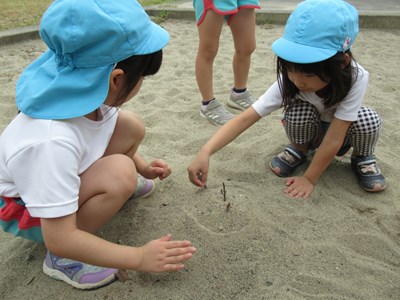 じっと座っているから「どうしたの?」と尋ねると、なんと、アリさんを優しく手に乗せて遊んであげているではありませんか。ちっちゃなちっちゃな真っ黒い身体で、止まることなくどこまでものぼり続けるアリさんが、かわいいんだって!!