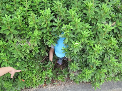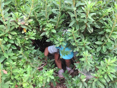 「虫を探すためなら!」生い茂っている枝をかき分け、かき分け、中へ入って行ったよ😲