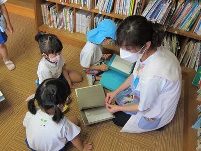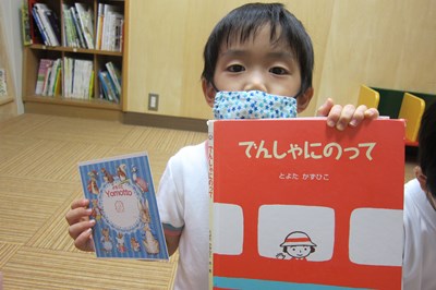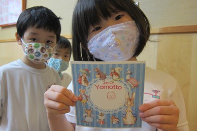 みんなに本に親しんでほしいとの思いから『Yomottoカード』を作り、まずは年長組から、お試しでスタート。「ここに来たら、スタンプを押してね!」