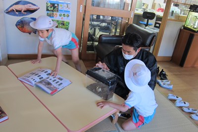 そんな疑問をすぐに解決してくれる図鑑がいっぱいの『ふしぎ発見コーナー』では、子ども達が園長先生と鈴虫について語り合っていましたよ😊ステキなひとときですね。