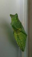 サナギ。こんな風にコウモリみたいなサナギになって、逆さ向きにお尻の方からぶら下がってゆらゆらしていたね。