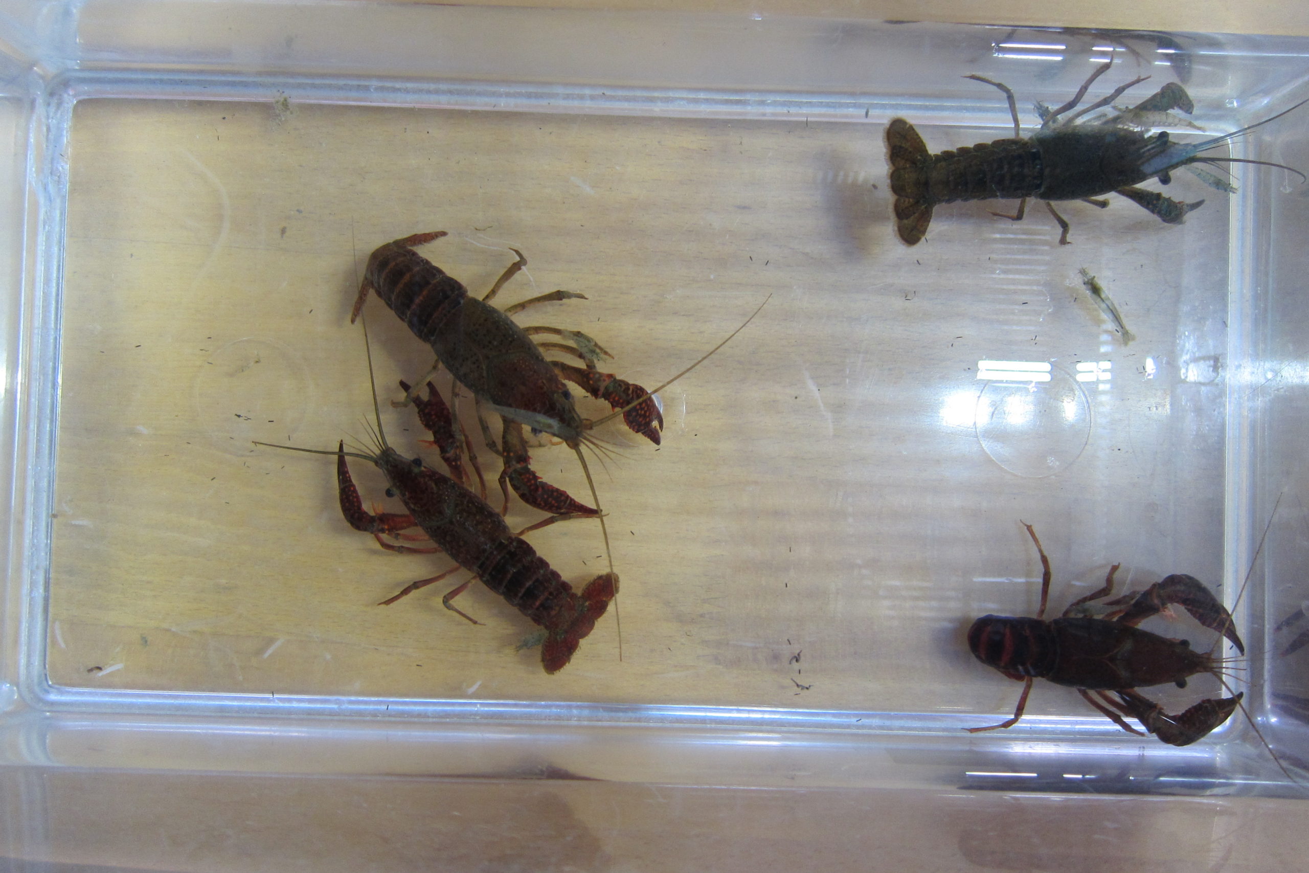 赤ちゃんザリガニも元気いっぱい!くま組のそうちゃんが取ってきてくれました。