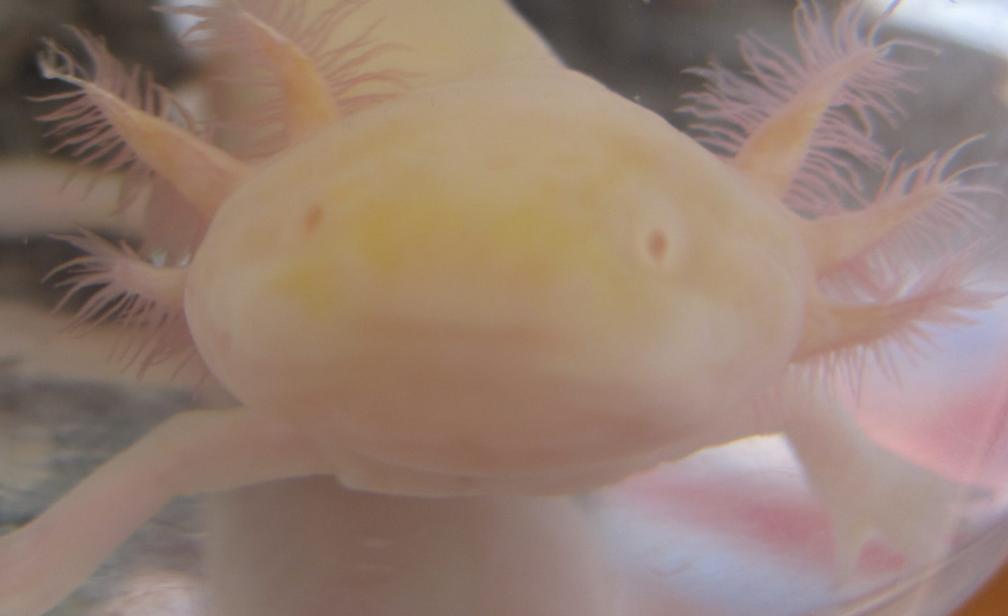 お顔の横から出ているのは、エラなんだよ。暑いのが苦手で、人間が手で触ると、やけどしてしまうから気を付けてお世話しないといけないんだって😲みなさんご存じですか?