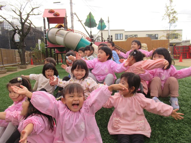 英語は、「実体験を通して学ぶ」「五感をよく使って学ぶ」とよく身につくと言われています。そして、自然の中や、広々とした園庭は、『子ども達がもっとも五感を使う場所』です。