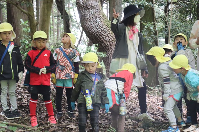 「あっ!鳥がピピピって鳴いてる」「先生、小さな虫がいるよ」「あっちにもこっちにも木がいっぱい!」とすぐに反応してお話ししてくれる子ども達。ステキだな・・・って思います。