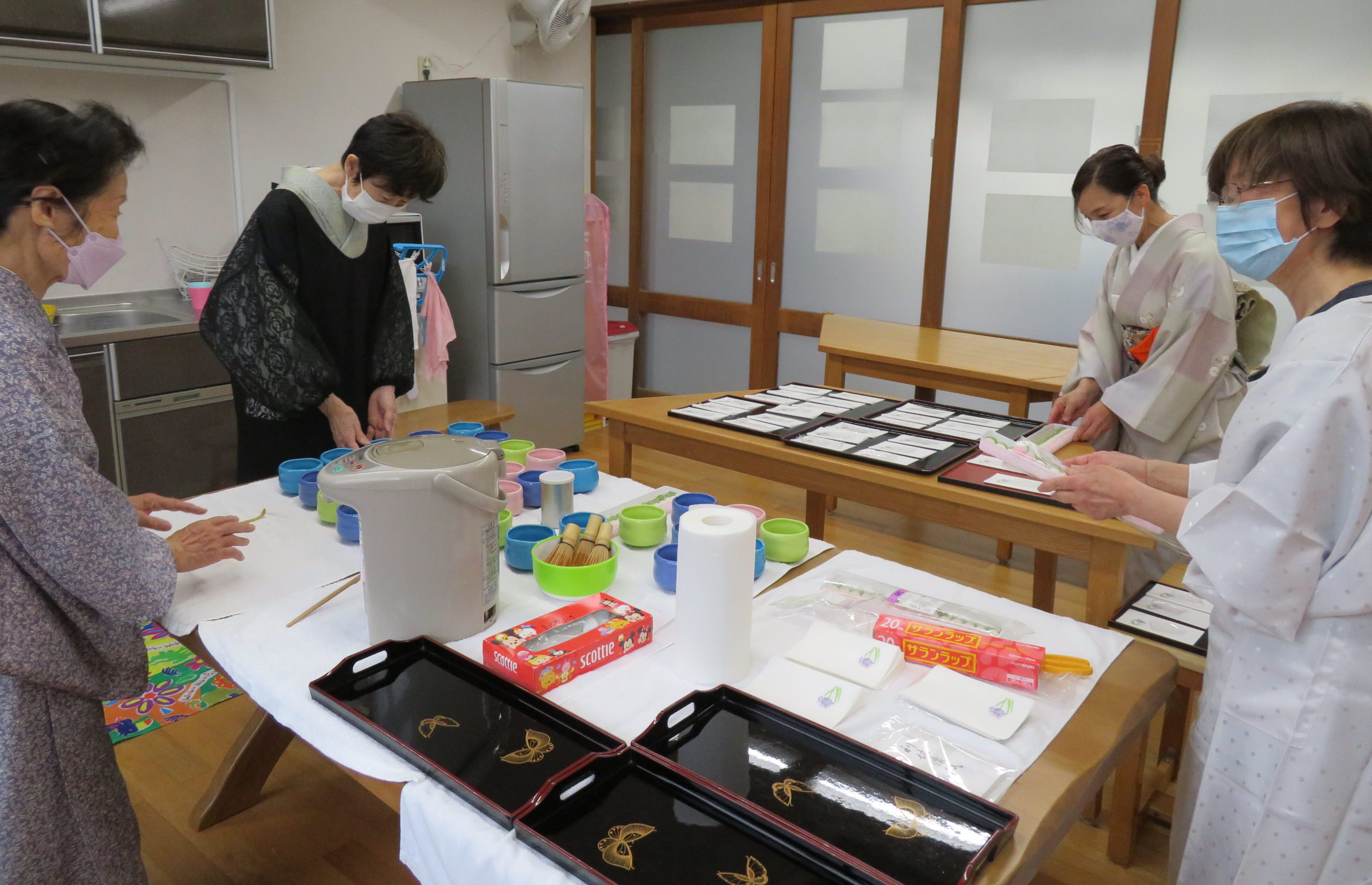 日比野先生のお弟子さん方は、心を込めて、お茶やお茶菓子の準備をして下さっていましたよ。皆さん笑顔が尽きない、とっても和やかな雰囲気が印象的で、きっと今日の日は子ども達にとってステキなひとときになる・・・と予感しました😊