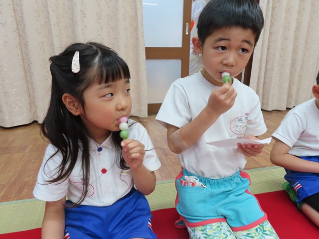 「おいしい!」小さな三色団子はあっという間に棒だけに😊