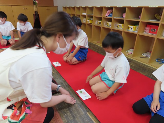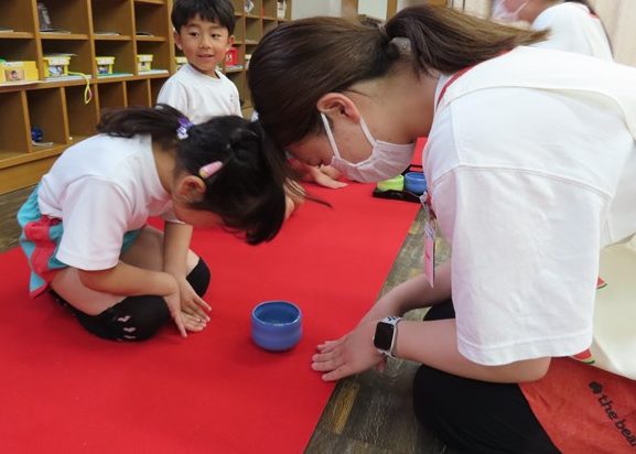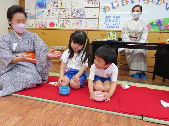 日本の伝統行事である『お茶会』を本格的な雰囲気の中で経験できた子ども達。ご指導頂いた日比野先生は子ども達の姿を「とっても上手だったよ。」「みんな、かわいらしいね。」とたくさん褒めてくださいました。うれしかったね。