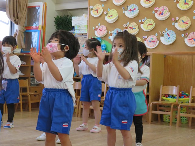 さやか先生がとっても明るい声で歌うのを聞きながら、みんなも手拍子♪