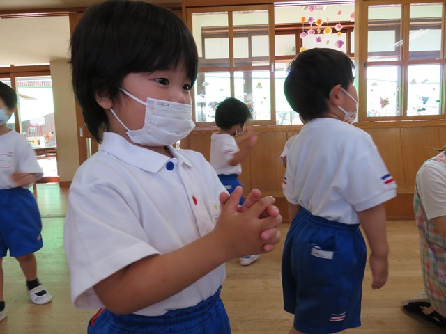 だんだん慣れてきて、先生のえがおを見ながら、ポンポン!とリズミカルに手を叩いていたね。