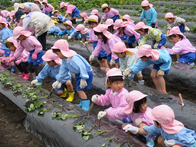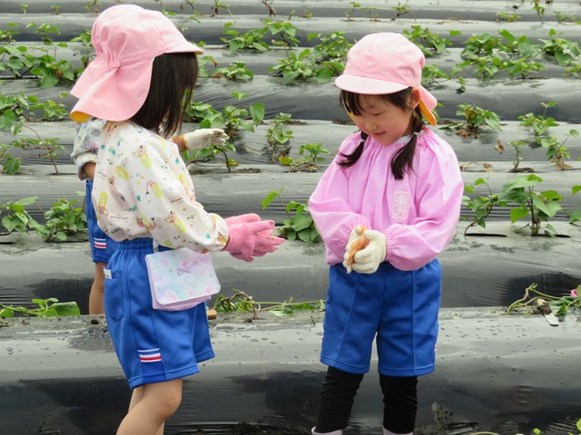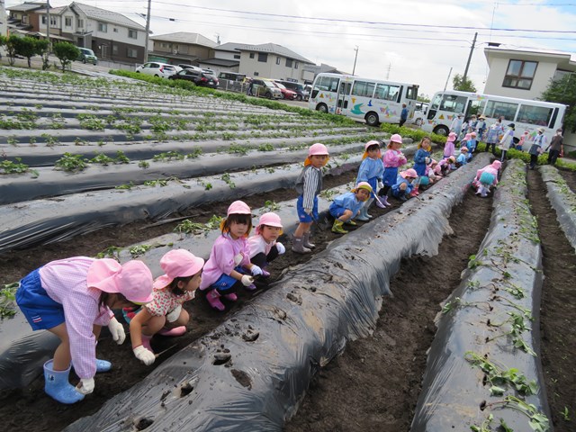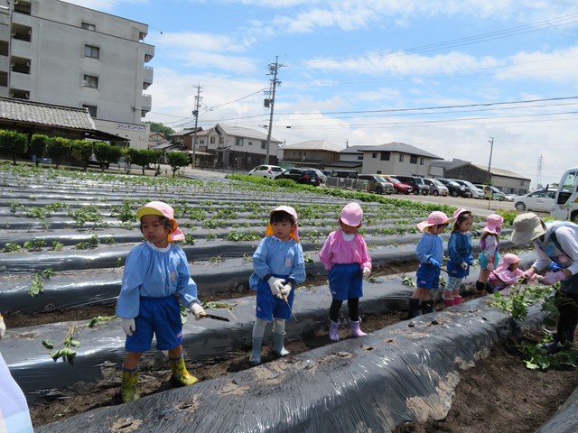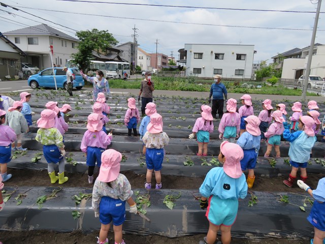 5月31日は年中組の「さつまいもの苗植え」の日。みんなの準備はバッチリ!(いつも園外保育はお天気が心配されますが、臨機応変にご協力くださる保護者の皆様、本当にありがとうございます。)