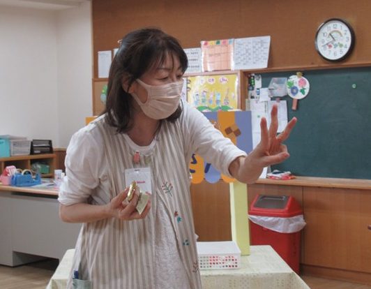 さちよ先生が「3つ、好きなお菓子をお買い物できるよ!」と教えてくれました。