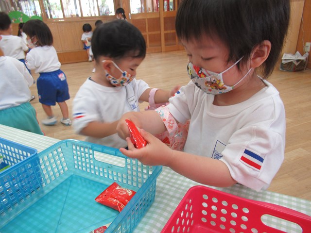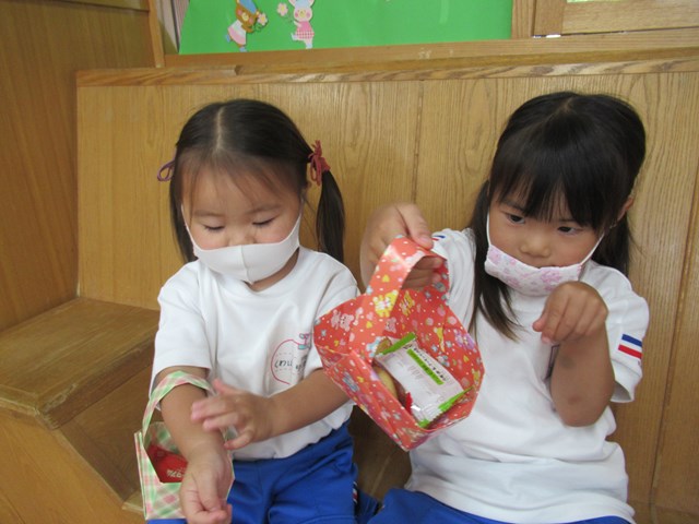 お友だちと一緒に中身を確認してる子も。また、みんなでやってみようね。