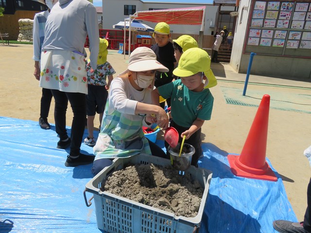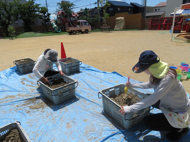 クラスとクラスの移動の間には、先生達が、子ども達が掘りやすいように土を砕いてくれましたよ。