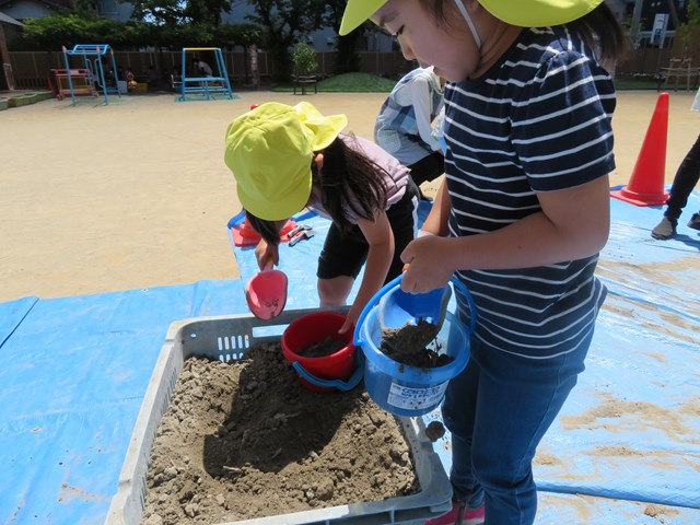 「小関さん、よろしくおねがいします!」とみんなで元気にご挨拶してから、バケツとスコップを持って、それぞれの場所に散らばりました。