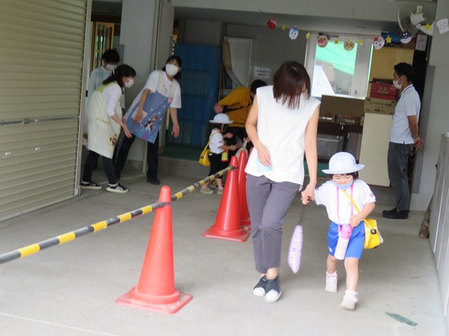 「引取り訓練だけでなく、園内に入られる時は、保護者名札を必ず見えるようにかけていただき、車に乗るまではお子さんの手を絶対に離さないようにお願いします。」