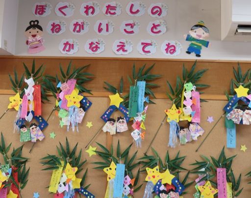 『みんなで、スターフェスティバルって言ってみようね』お部屋からは元気いっぱい声が、教務課まで聞こえてきたよ!