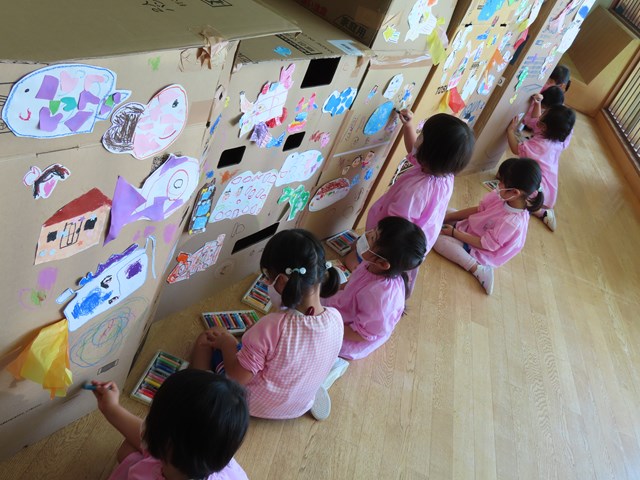 年少組さんはクレヨンで自由自在に落書き!!