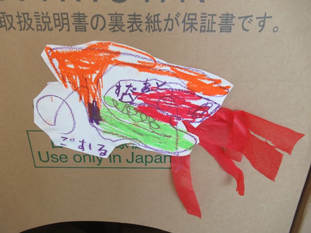 「すたあと」「ごおる」と、覚えたての字を一生懸命に書いた、ステキなロケットを発射!
